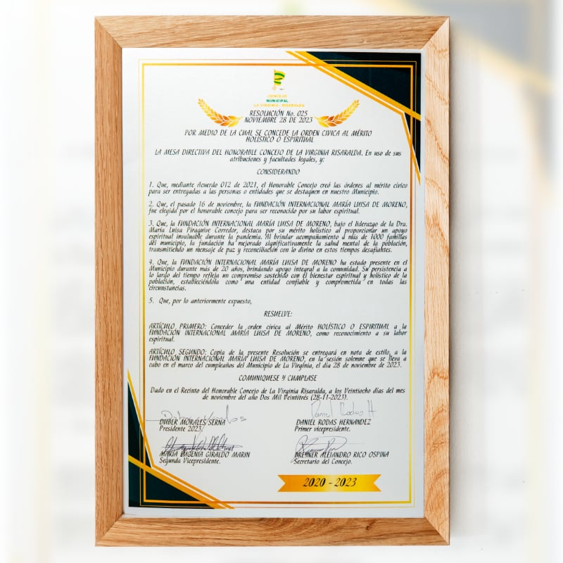 La Fundación Internacional María Luisa de Moreno, bajo el liderazgo de la Dra. María Luisa Piraquive, fue reconocida por su mérito holístico al proporcionar un apoyo espiritual invaluable durante la pandemia a más de 1000 familias del municipio de La Virginia, en el departamento de Risaralda.