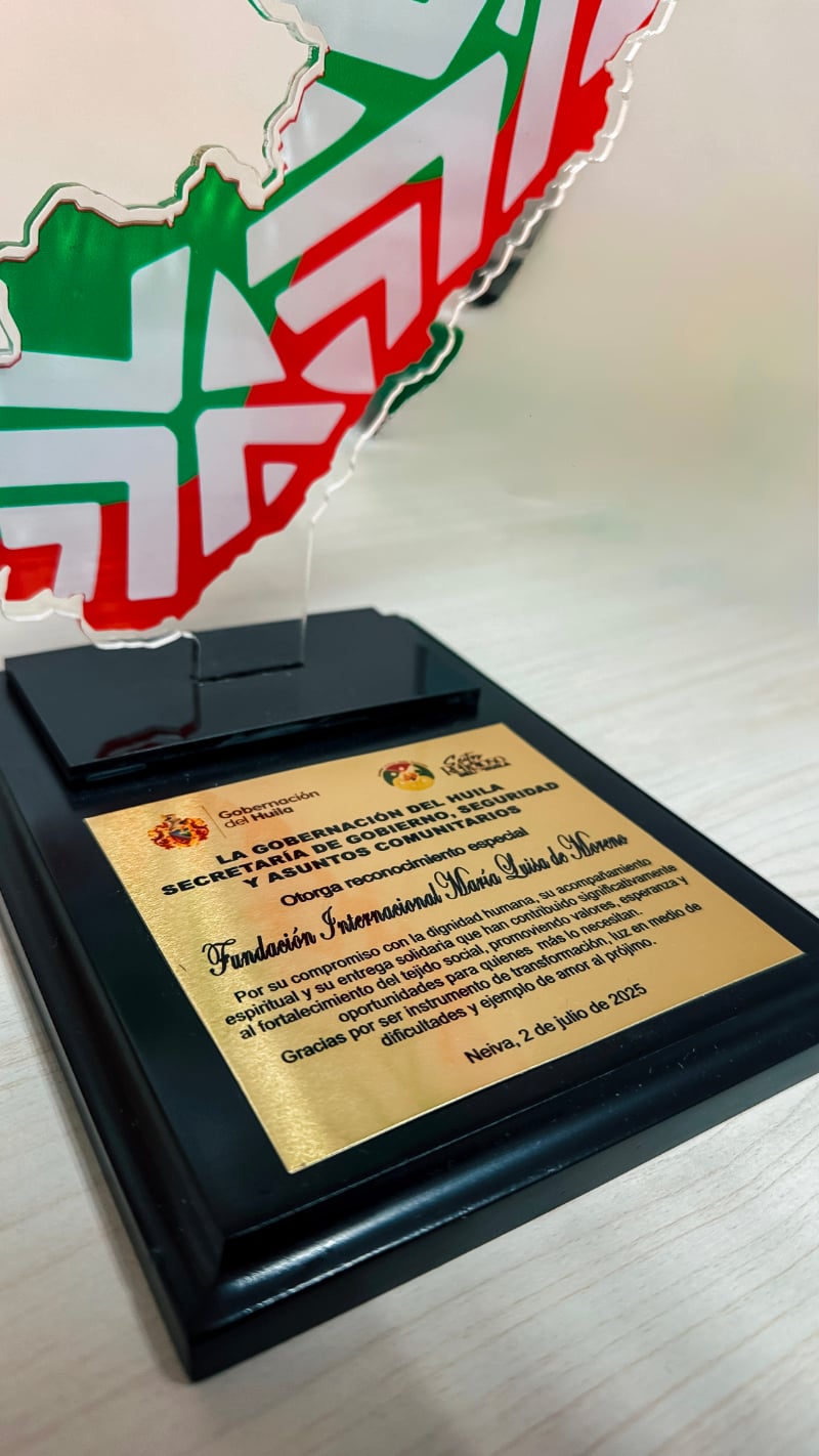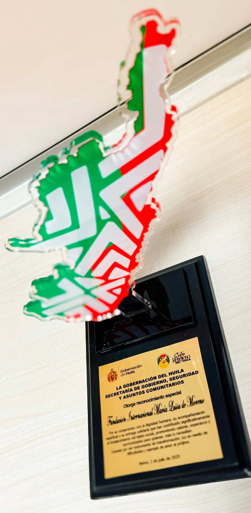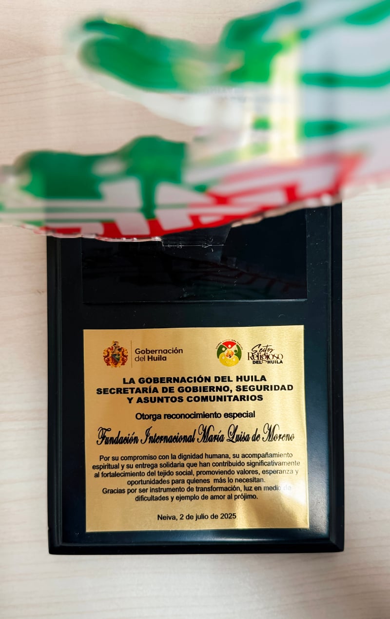 La Gobernación del Huila otorgó un reconocimiento especial a la Fundación Internacional María Luisa de Moreno por su compromiso con la dignidad humana, su acompañamiento espiritual y su entrega solidaria. Este gesto destaca el impacto significativo que ha tenido la Fundación en el fortalecimiento del tejido social del departamento, promoviendo valores, esperanza y oportunidades para quienes más lo necesitan.